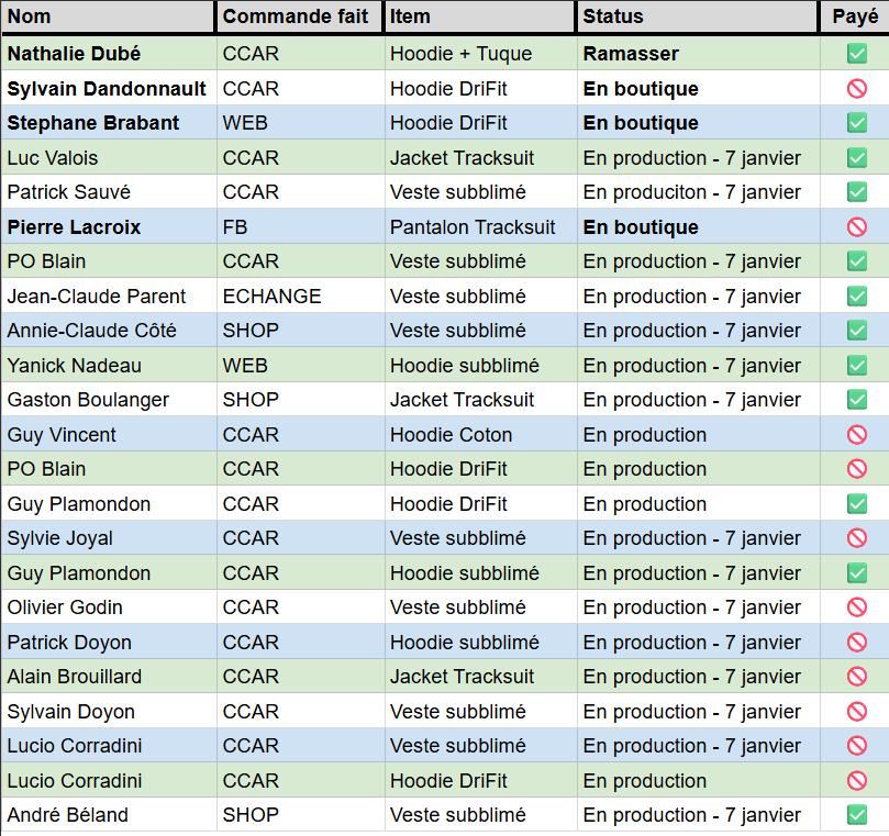 Commande chez Workout Athletics en date du 15 décembre